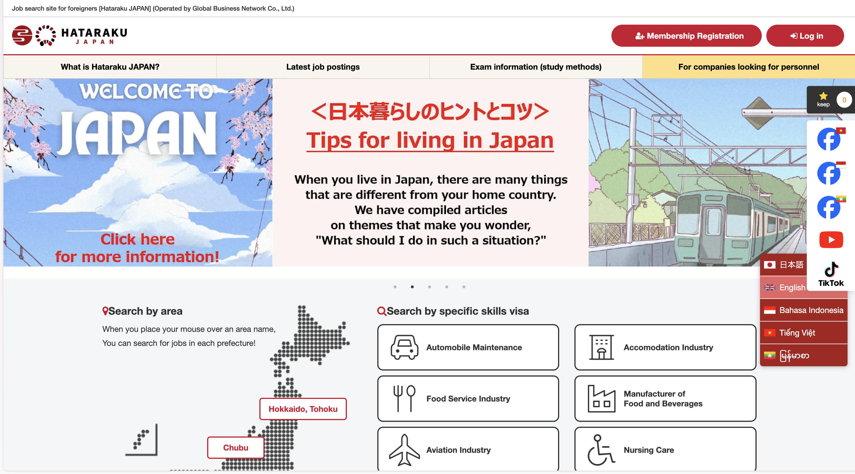主な求人掲載企業は、自動車整備、介護、食品製造、外食、宿泊などの業界の企業で、特定技能実習生を中心とした、高度人材に特化している点が特徴です。